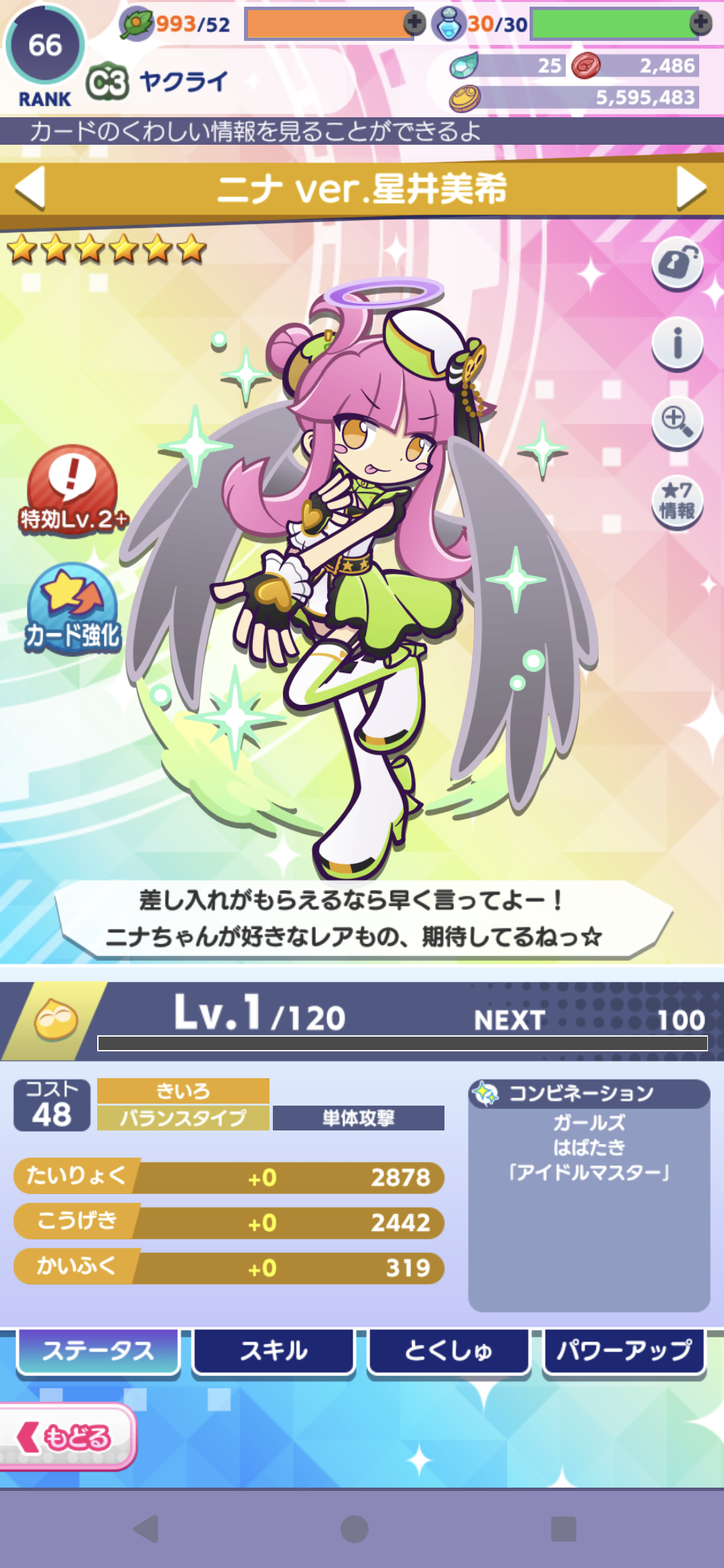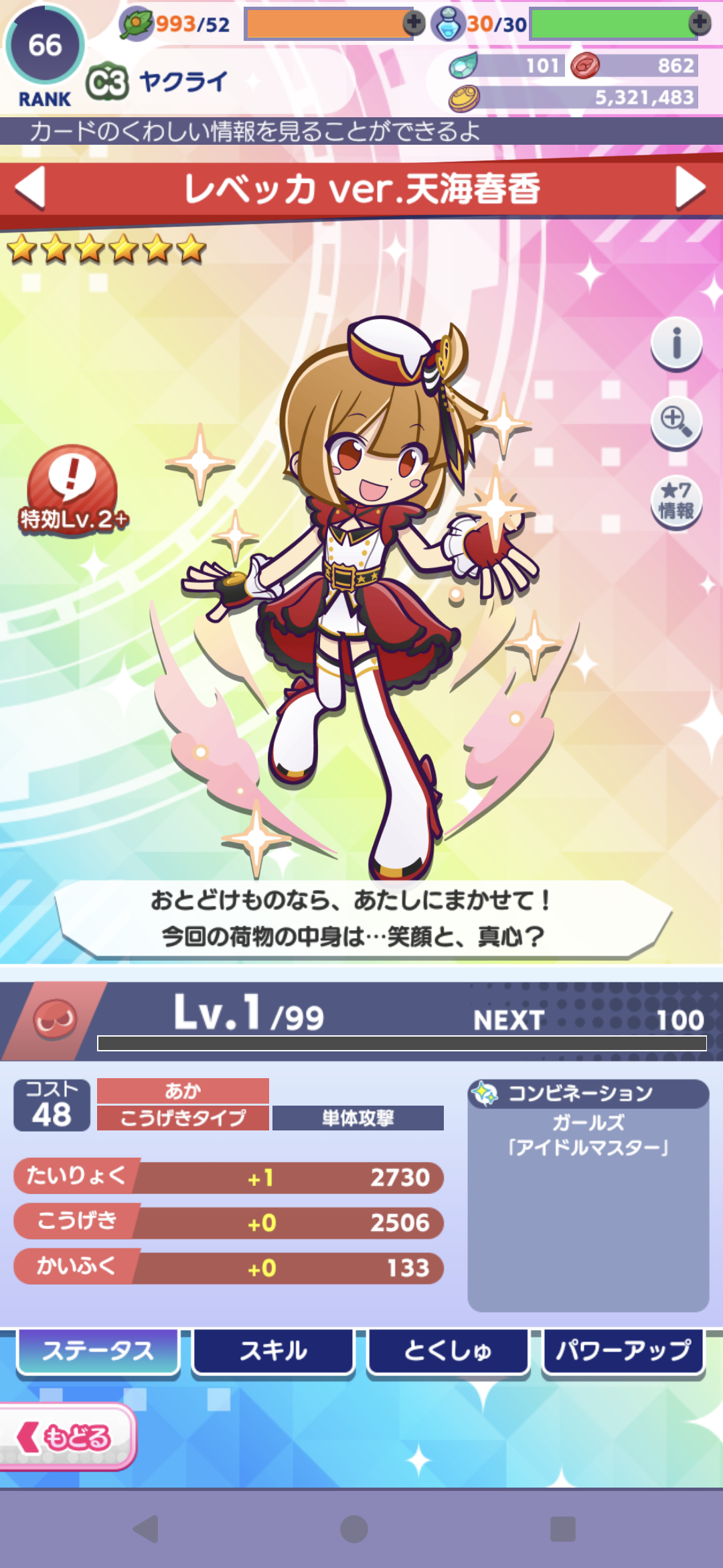 というわけで赤い子と黄緑の子1枚ずつ引き換えて両方とも★7に出来るのでやっていきましょう