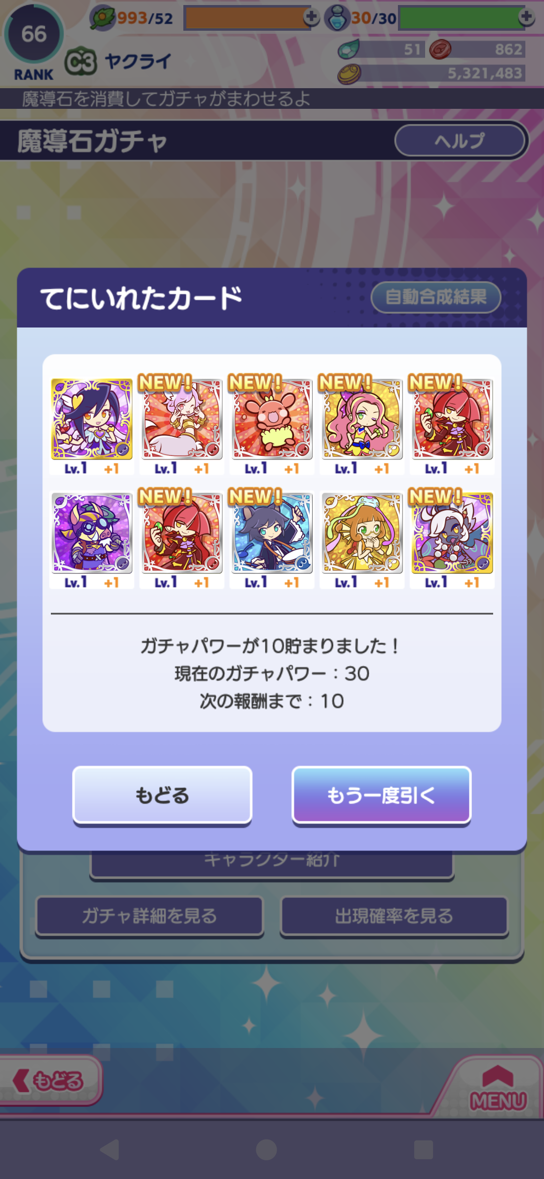 ガチャパワーというのがあって回した数によってガチャ関係の報酬が貰えます